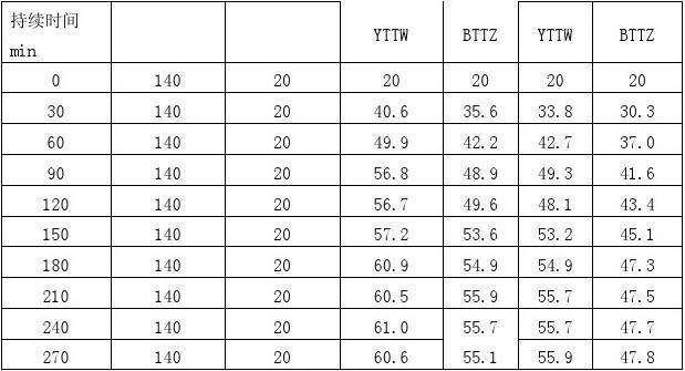 在室溫條件下,截面規(guī)格相同(4×25)的YTTW 和BTTZ電纜樣品置于自由空氣中通上相同電流進(jìn)行對(duì)比試驗(yàn),在電纜的導(dǎo)電線芯及護(hù)套處按相同的位置設(shè)置測(cè)溫點(diǎn),電纜測(cè)試結(jié)果見下表2:
